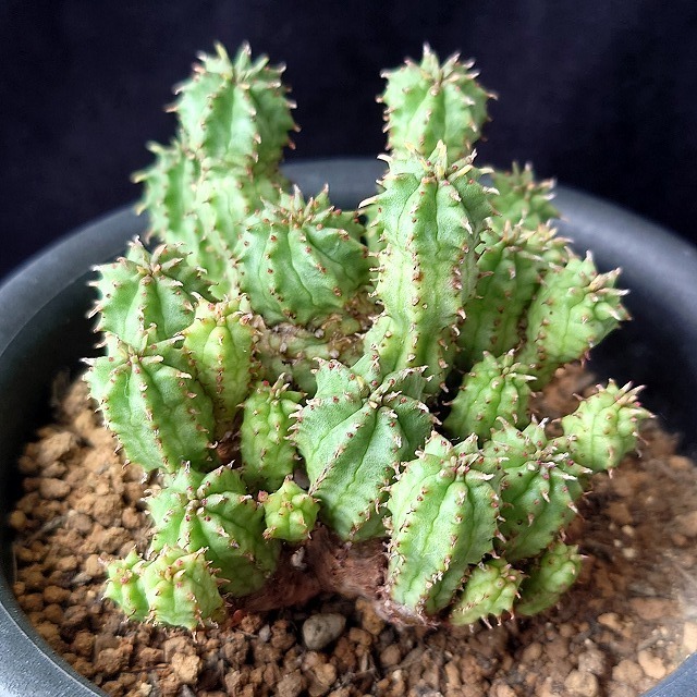H.11cm/W.5.8cm(刺以外の胴体) そこそこ大きさのある苗。趣の有る鉢カバーなどに入れたらかっこよく鑑賞できそうな個体です。